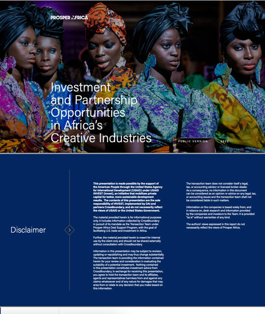 Prosper Africa: Investing in Africa Creative Industries Report