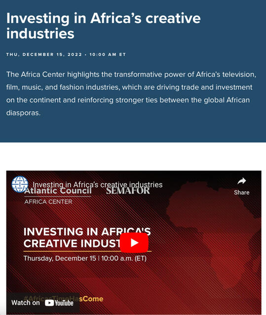 Atlantic Council on Investing in Africa’s Creative